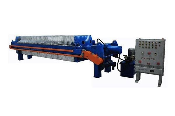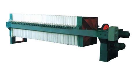 隔膜壓濾機(jī),隔膜壓榨壓濾機(jī)由隔膜板和廂式濾板排列組成濾室,在輸料泵的壓力作用下將漿料輸入濾室,通過過濾介質(zhì)(濾布)將濾料中的固體和液體分離,當(dāng)漿料中的固體形成餅后,再向隔膜通入空氣,對濾室內(nèi)的固體充分壓榨,降低含水率。對于粘性物料的過濾及對含水率要求較高的用戶,此機(jī)更有其獨(dú)特的特性。